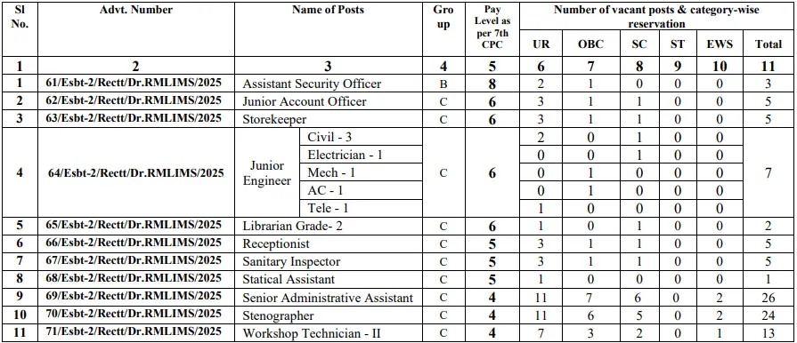 DR RMLIMS Non Teaching Recruitment 2025 Vacancy Total : 129 Posts